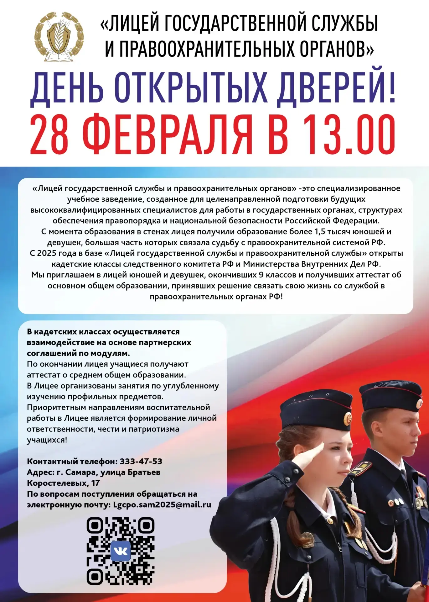 Военно-космическая академия имени А.Ф.Можайского приглашает к поступлению в 2026 году выпускников общеобразовательных учреждений и образовательных учреждений среднего профессионального образования Самарской области.